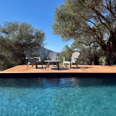 Dès votre arrivée, vous êtes accueillis par deux majestueux oliviers millénaires, témoins d’un passé ancestral. Le chant des cigales, le bruissement du vent dans les feuillages et le doux parfum des agrumes vous enveloppent instantanément. Ici, tout est pensé pour offrir une parenthèse enchantée.