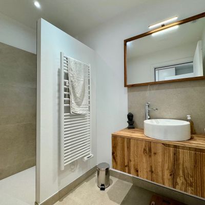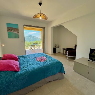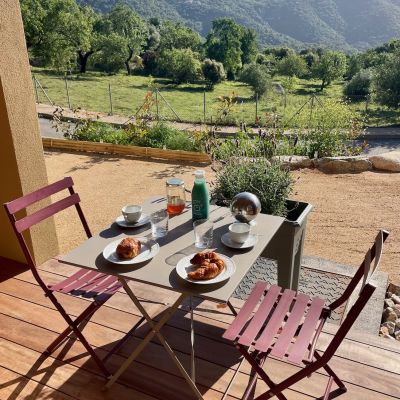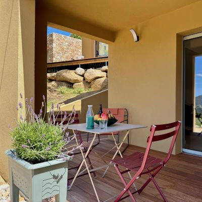 Dans le cas où les deux chambres de Sognu di Sole sont louées par la même famille ou le même groupe d’amis, le bas de la villa se trouve privatisé.